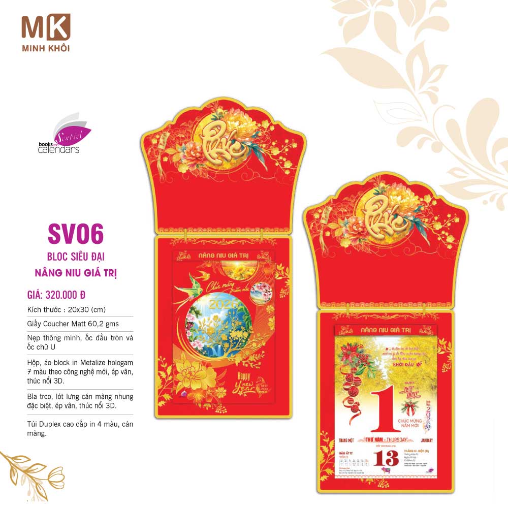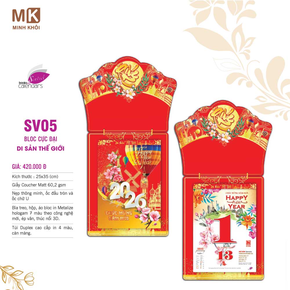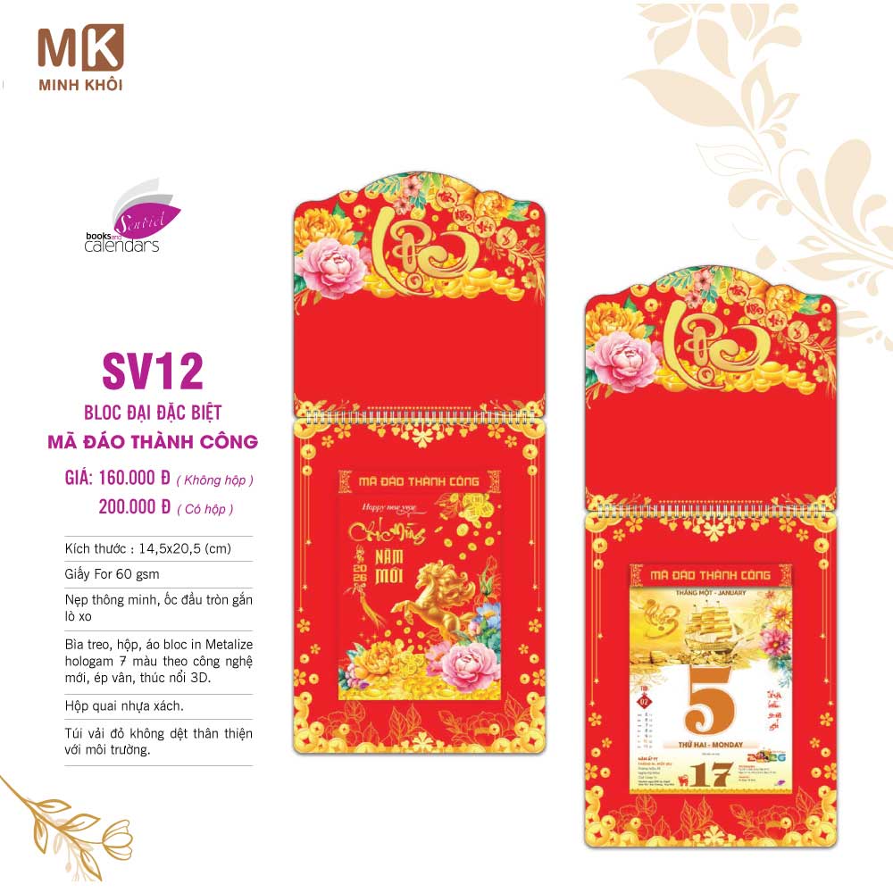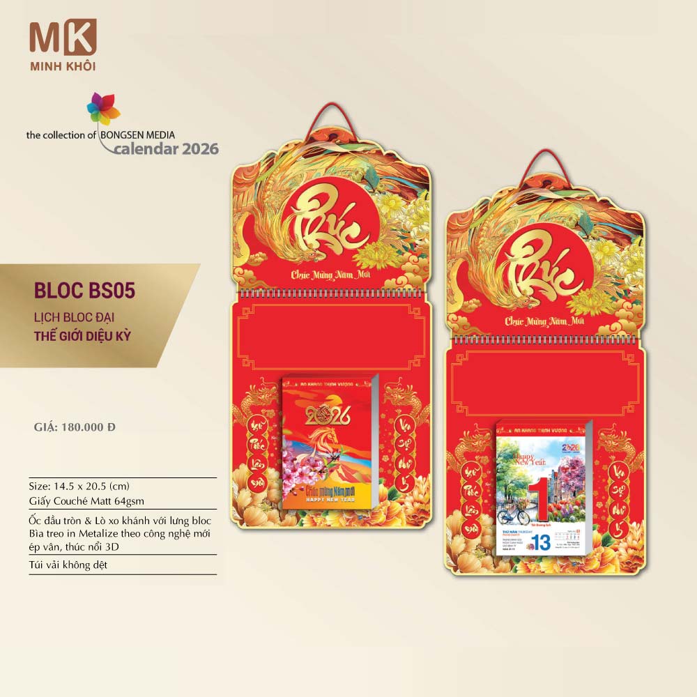 - Lịch bloc đại: 14 x 20 cm.