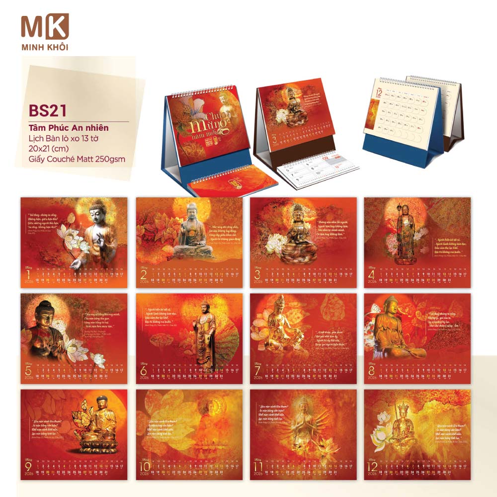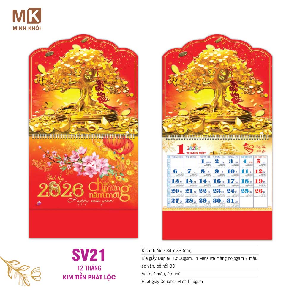 - Loại lịch: Lịch treo tường hoặc lịch để bàn với kích thước tùy chọn.