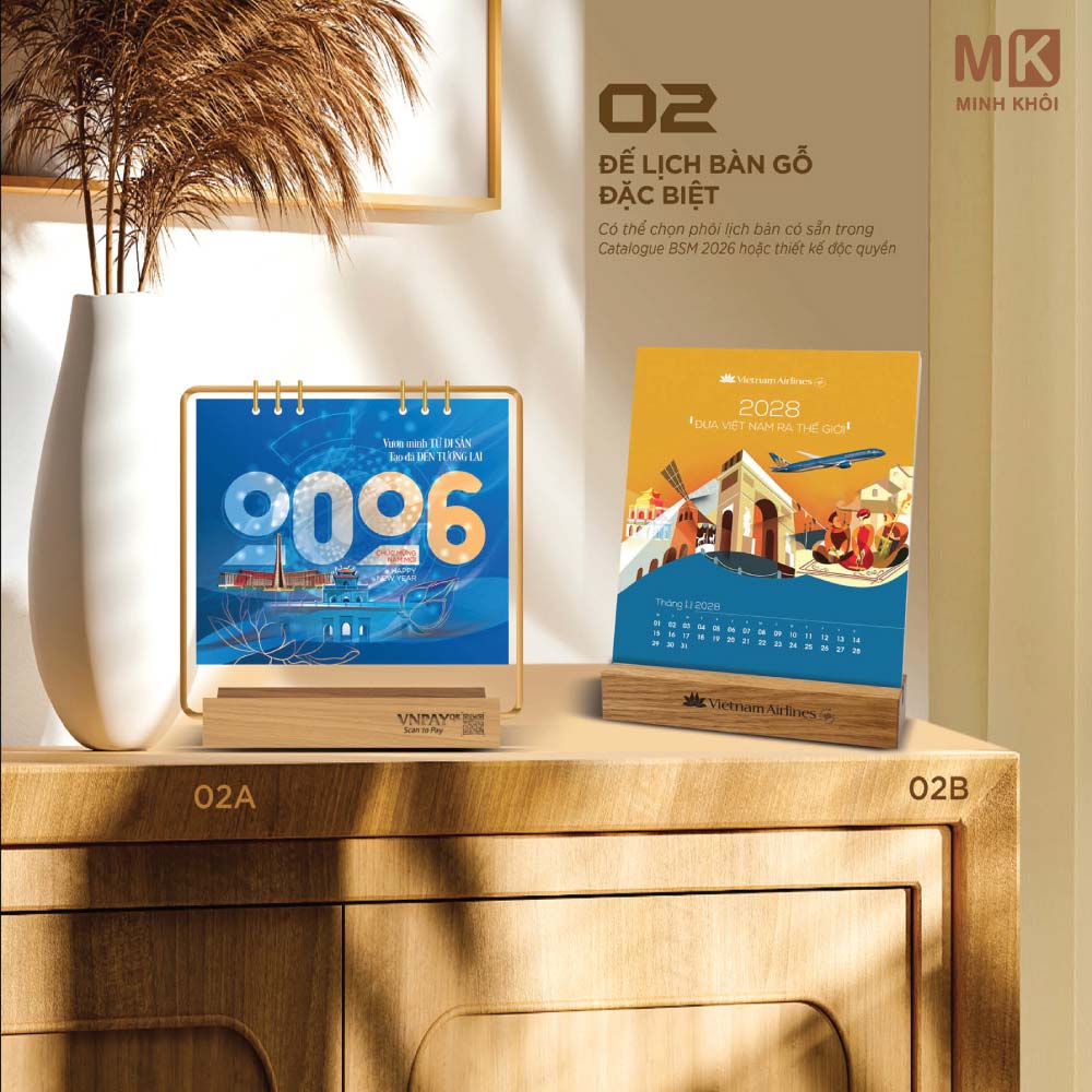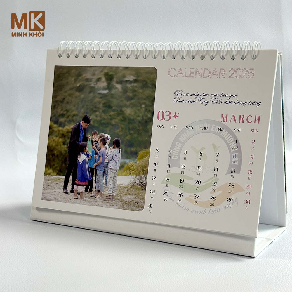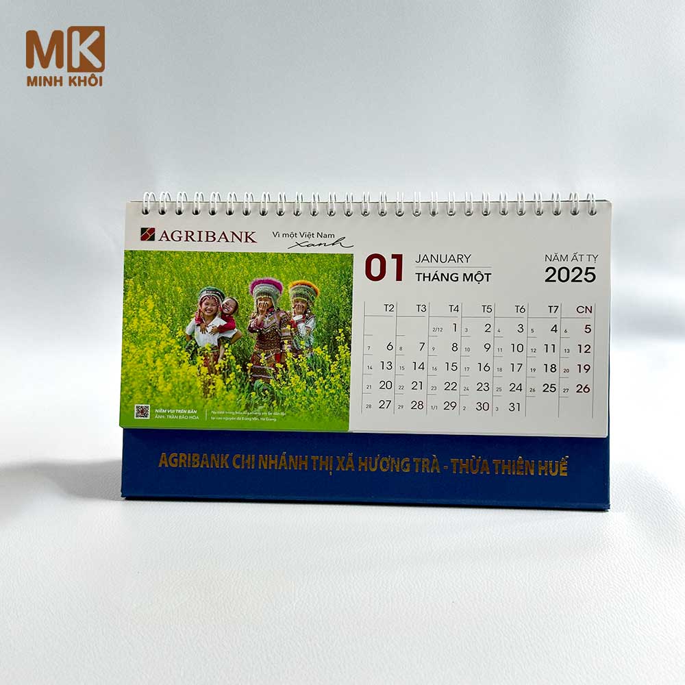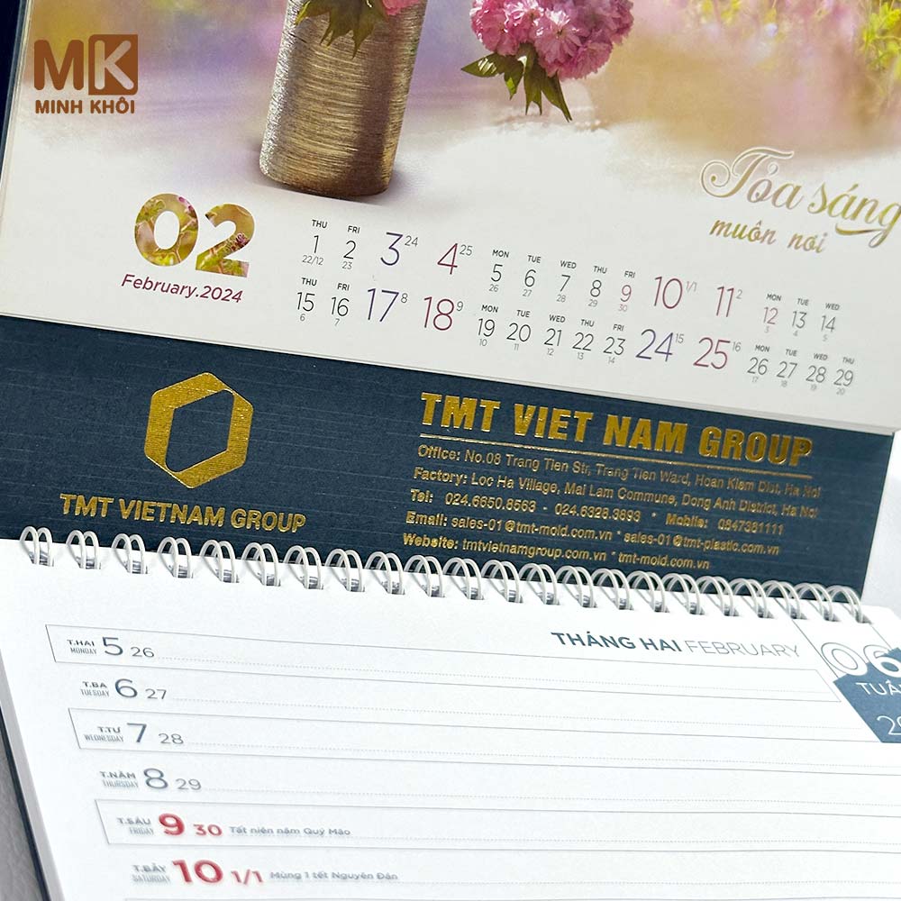 - Tùy chỉnh: In thông tin thương hiệu lên phần khánh lịch.