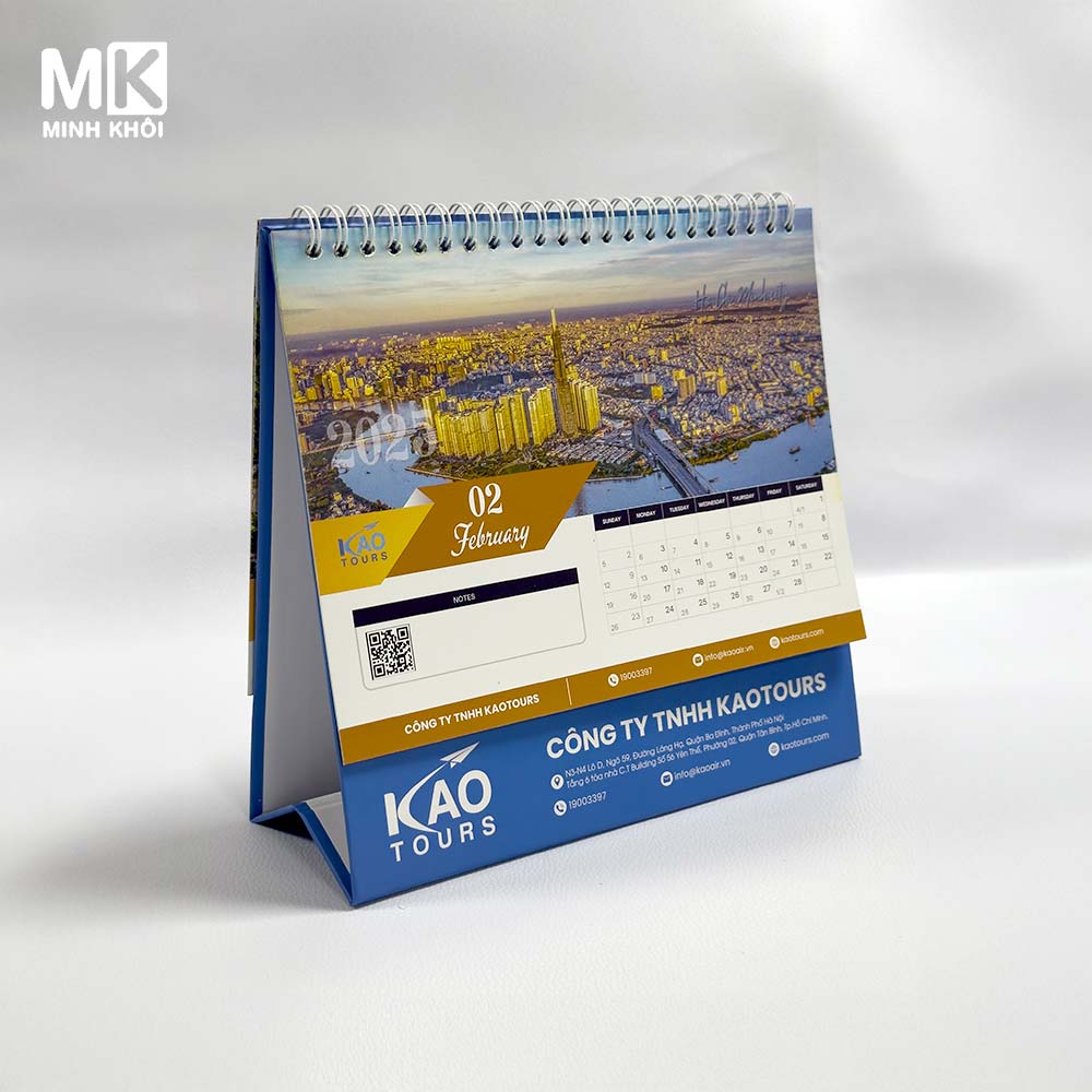Mẫu lịch để bàn chữ A công ty KAOtours do In Minh Khôi trực tiếp sản xuất, gia công và in ấn theo yêu cầu. Nếu bạn có nhu cầu, hãy liên hệ chúng tôi để được tư vấn chi tiết nhé!