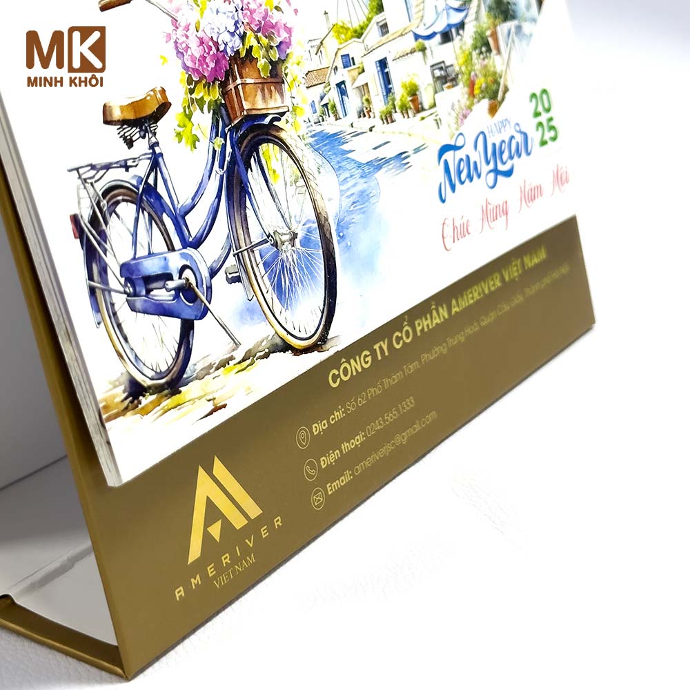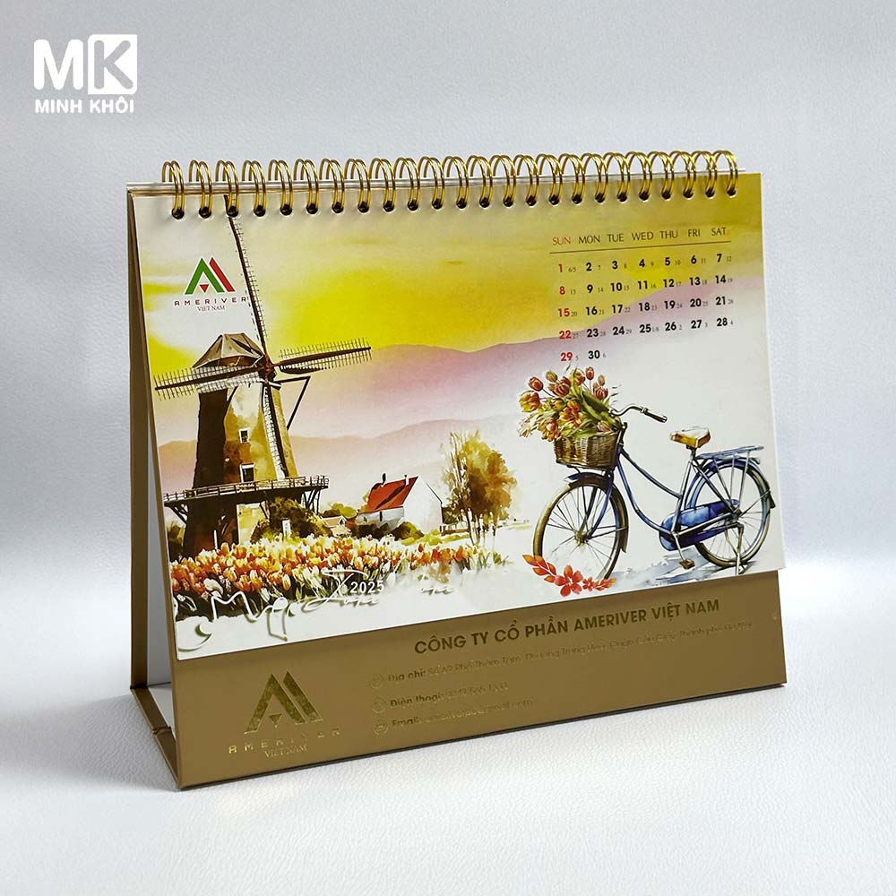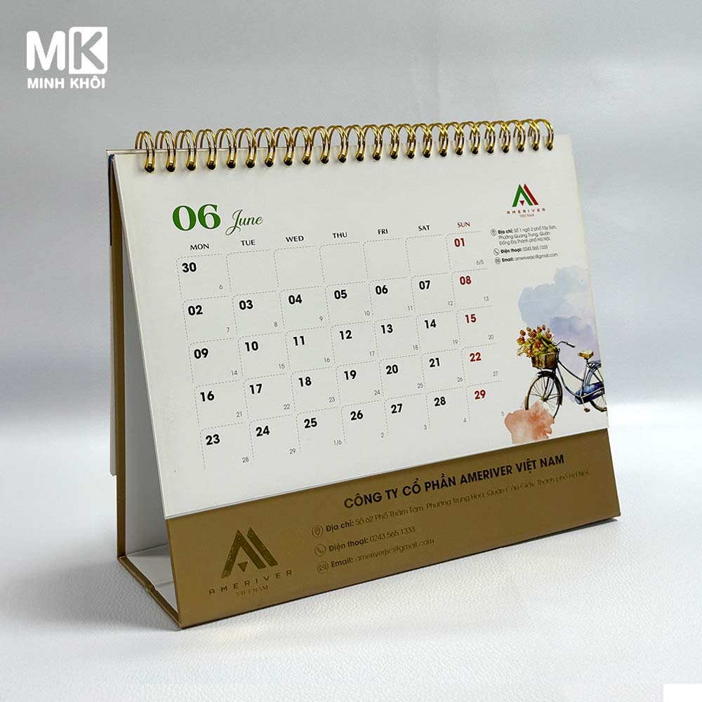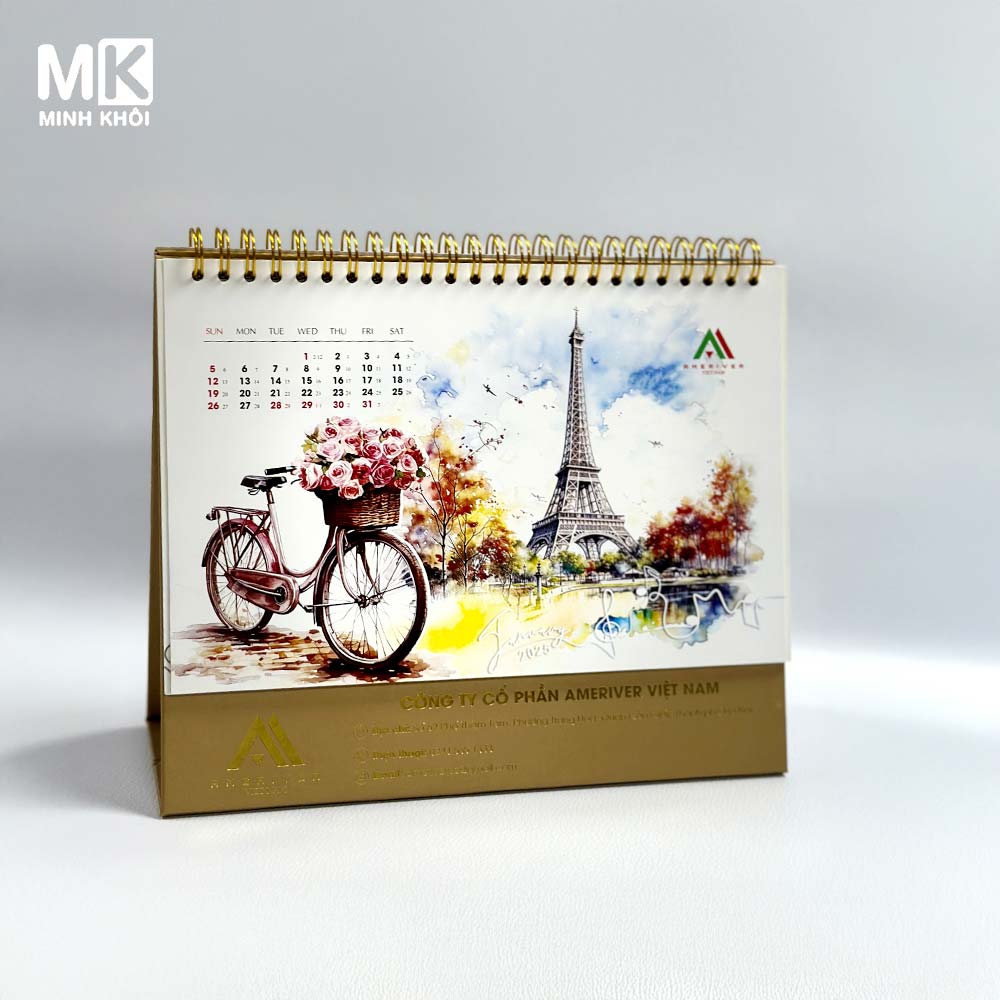 Mẫu lịch tết để bàn chữ A công ty Ameriver do In Minh Khôi sản xuất, gia công và in ấn theo yêu cầu. Nếu bạn có nhu cầu hãy liên hệ chúng tôi để nhận báo giá nhanh nhất nhé!