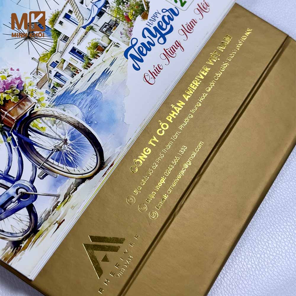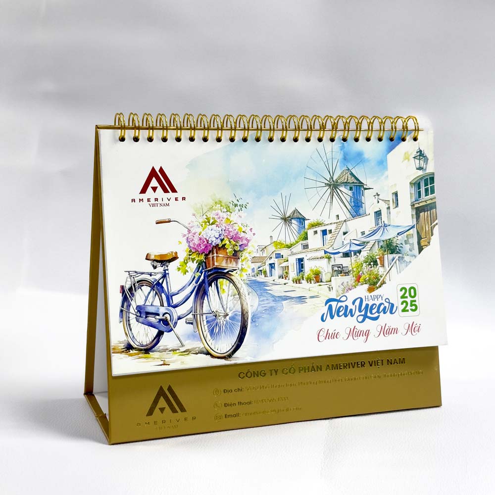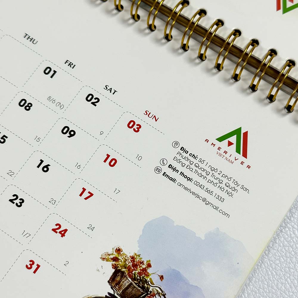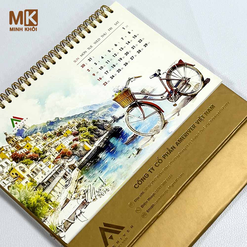 Mẫu lịch tết để bàn chữ A công ty Ameriver do In Minh Khôi sản xuất, gia công và in ấn theo yêu cầu. Nếu bạn có nhu cầu hãy liên hệ chúng tôi để nhận báo giá nhanh nhất nhé!