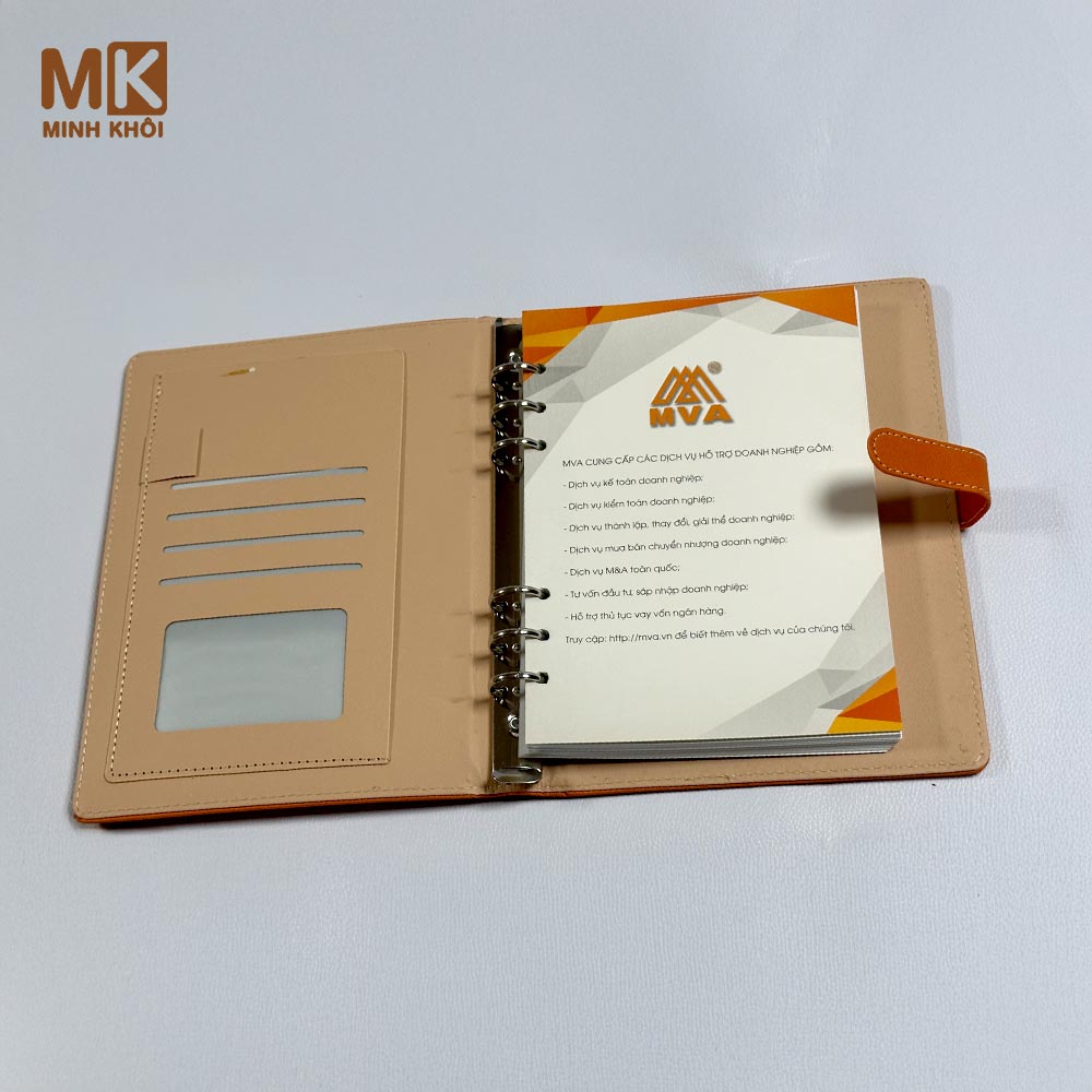 Mẫu sổ bìa da công ty MVA cao cấp do In Minh Khôi trực tiếp sản xuất, gia công và in ấn. Nếu bạn có nhu cầu, thì hãy liên hệ ngay chúng tôi để nhận báo giá nhanh nhất.