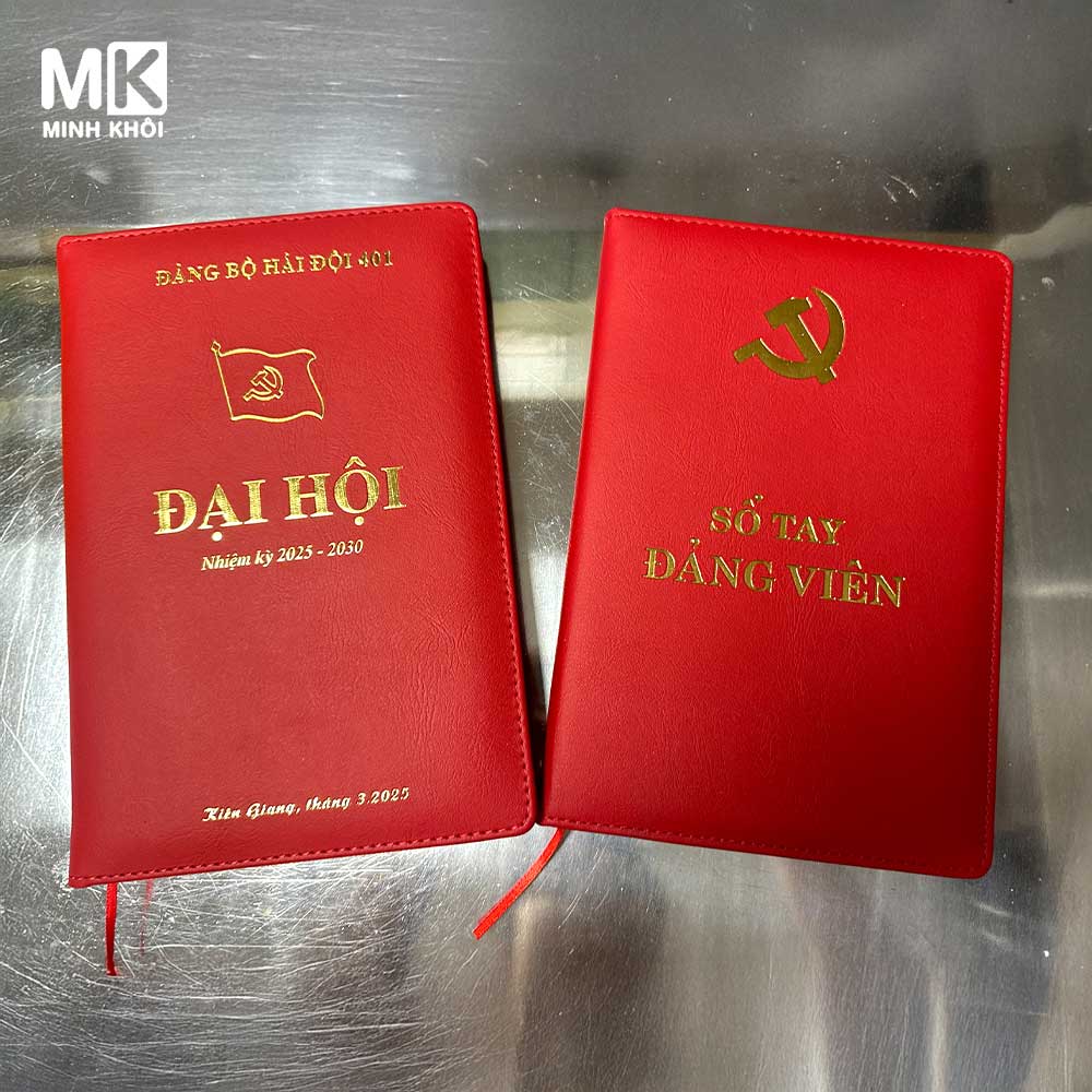 Mẫu sổ tay đảng viên bìa da do In Minh Khôi sản xuất và gia công, in ấn. Nếu bạn có nhu cầu in sổ theo yêu cầu, hãy liên hệ ngay chúng tôi để nhận báo giá nhanh nhất!
