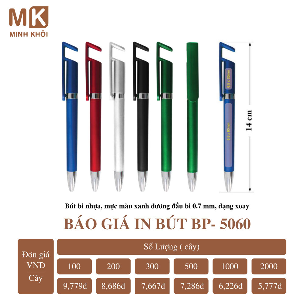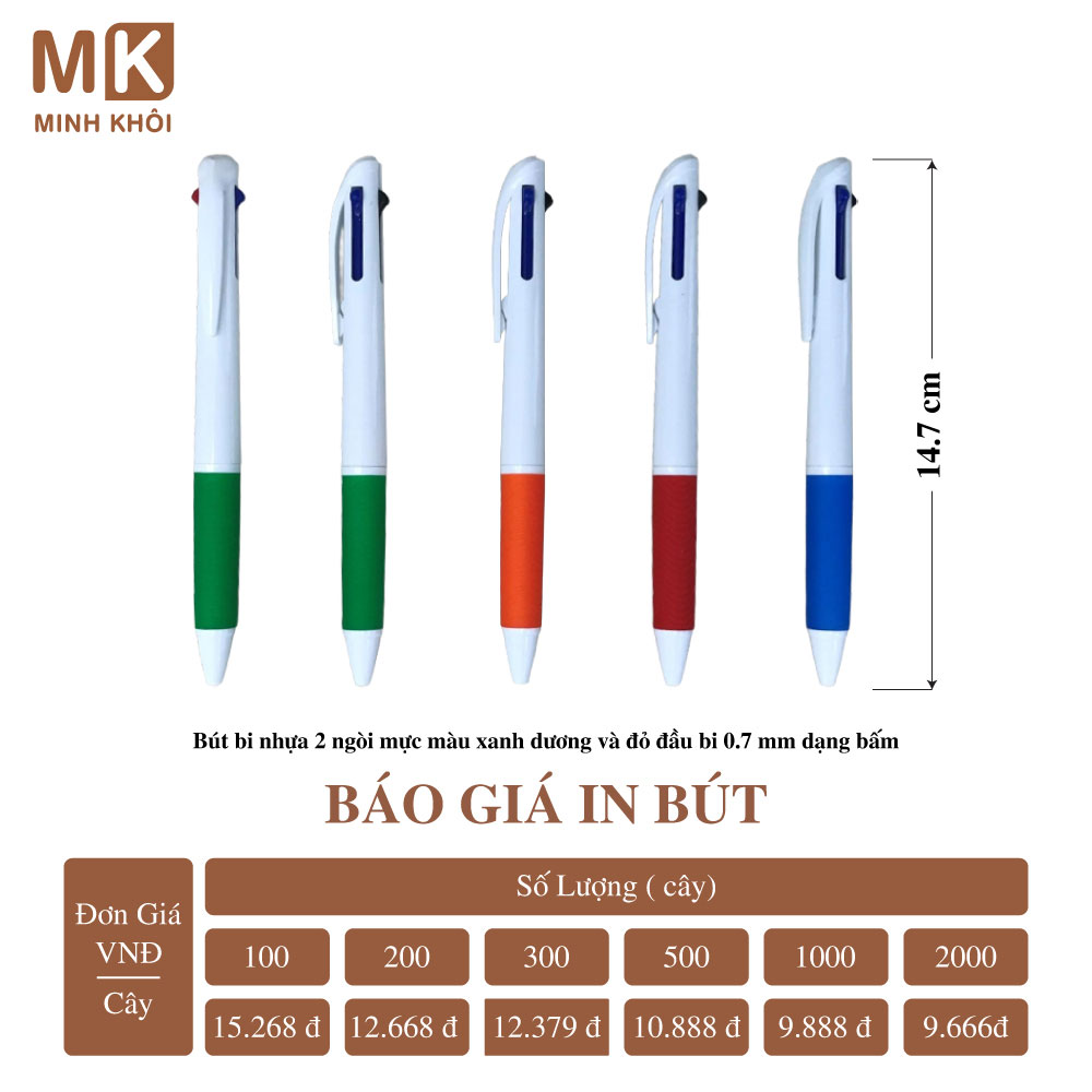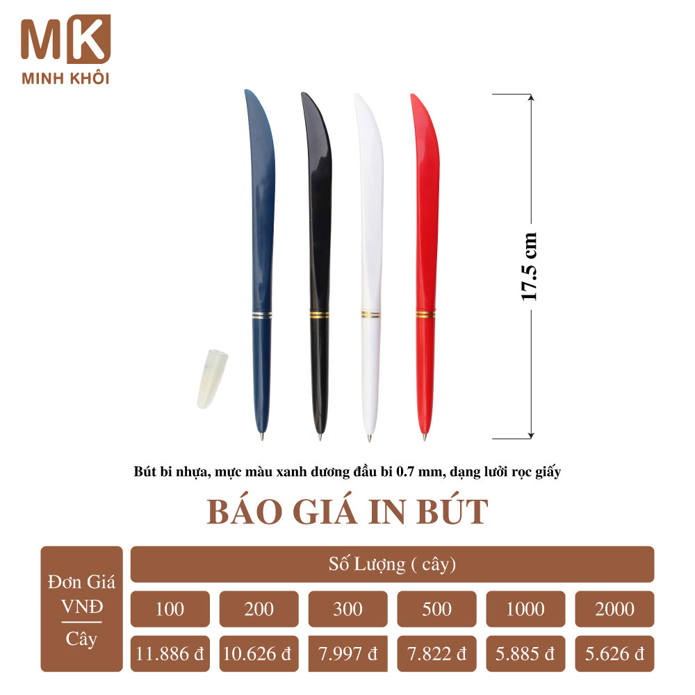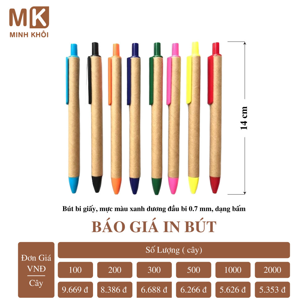 Chính vì vậy, để nhận báo giá chính xác, bạn hãy liên hệ với nhà cung cấp dịch vụ để được tư vấn và giá thành tốt nhất. Tại Hà Nội, bạn có thể kết nối với công ty In Minh Khôi để đặt in bút. Chúng tôi mang đến cho khách hàng nhiều lựa chọn mẫu mã và hình thức in ấn bút đẹp với giá cả hợp lý.