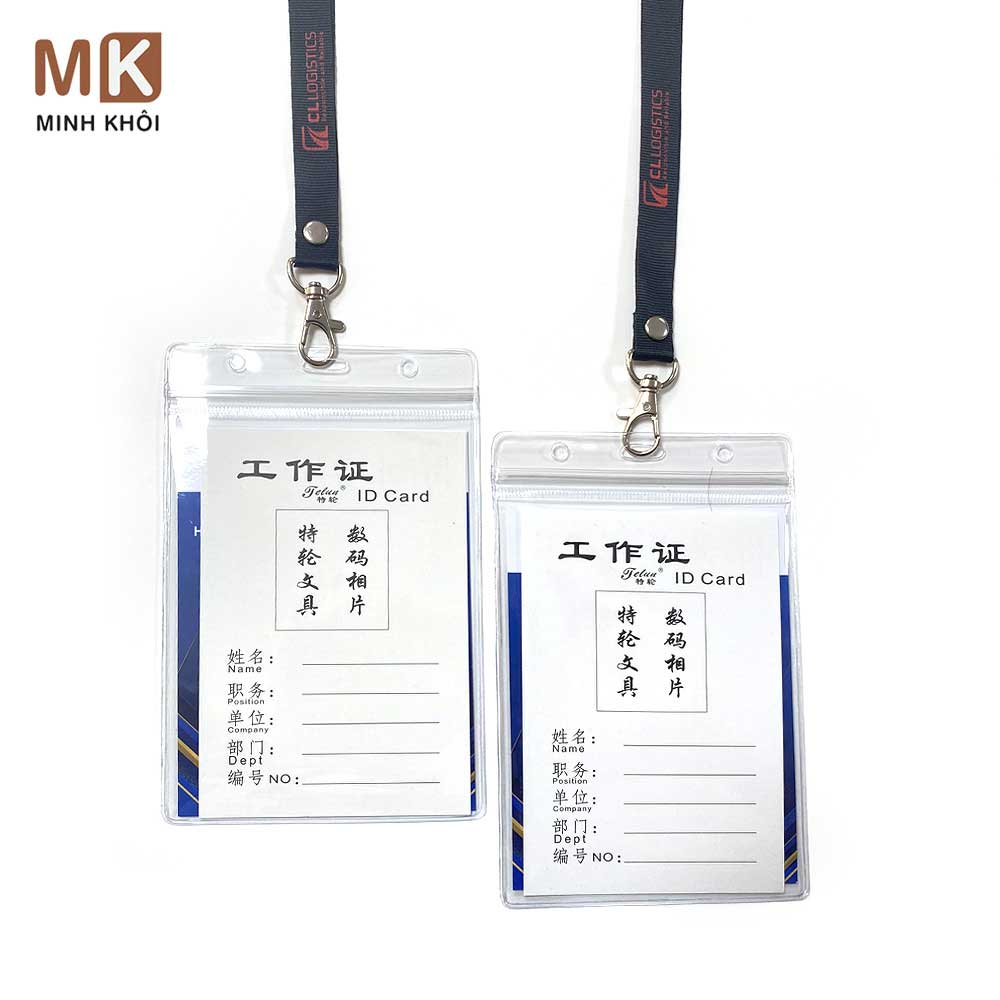 Ngoài dịch vụ in dây đeo thẻ, Minh Khôi còn cung cấp các mẫu bao đựng thẻ chất lượng cao, giúp bảo vệ thẻ nhân viên hoặc thẻ sự kiện khỏi các tác động bên ngoài. Bao đựng thẻ của chúng tôi được làm từ nhựa PVC trong suốt hoặc da công nghiệp cao cấp, mang đến sự sang trọng và độ bền vượt trội.